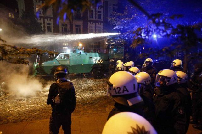 Por su parte, la Policía germana utilizó cañones de agua y gas pimienta para desperdigar a la multitud durante los incidentes de ayer.