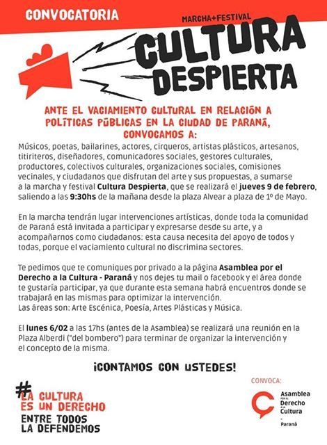 La marcha de los artistas, el 9 de febrero a la Municipalidad de Paraná, será un punto de inflexión en donde quedarán las posturas bien marcadas.