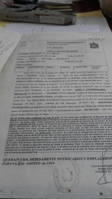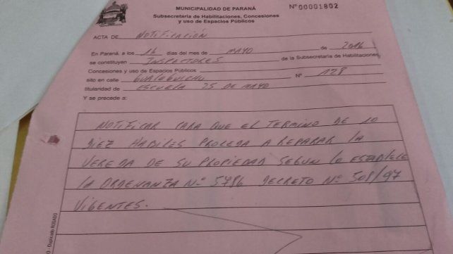 En Río Bravo publicaron la nota firmada por Claudio Puntel, el secretario general de Agmer Paraná, en donde describe el comienzo de la historia: "Todo comenzó el 16 de mayo con un acta de notificación que lleva el número 1802. Ese día, los inspectores de la subsecretaría de Habilitaciones, Concesiones y Uso de Espacios Públicos lo emplazaban en 10 días para proceder a reparar la vereda de su propiedad. 'Simbólica' fue el adjetivo que usó el inspector para calificar al acta; como para dejarlo tranquilo al director".
