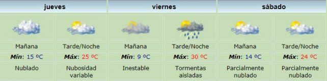 Se prevé que el área de cobertura sea afectada por tormentas aisladas, algunas localmente fuertes o severas acompañadas de importante actividad eléctrica, intensas ráfagas, caída de granizo y abundante caída de agua en cortos periodos.