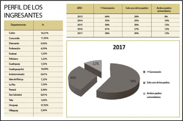 La "Universidad de los trabajadores", slogan de referencia y de defensa de la universidad pública, muestra aún su relevancia para miles de familias argentinas que buscan progresar: en el caso de la Facultad de Ciencias de la Salud, de la Universidad Nacional de Entre Ríos (UNER), el 60% de los ingresantes a la flamante carrera de Medicina, son primera generación de universitarios.