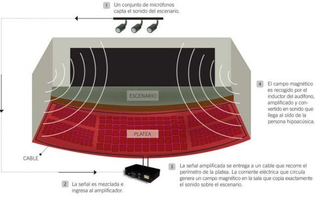 El INTI instaló un aro magnético en el auditorio del parque Tecnológico Miguelete, sede central del organismo tecnológico. El equipo amplifica el sonido de una fuente determinada (por ejemplo, de los micrófonos) y los convierte en ondas magnéticas que son recogidas por los audífonos de modo más nítido y sin interferencias del ruido ambiente.