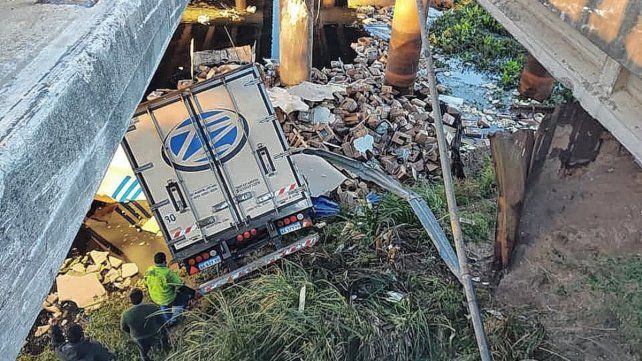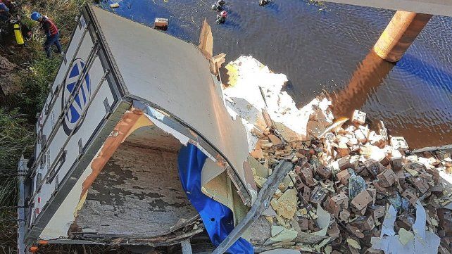 El accidente fue protagonizado por un camión térmico que procedía desde Misiones hacia Buenos Aires. Tras embestir contra las barandas centrales del puente sobre el arroyo, cayó al vació y la cabina quedó sumergida en el agua.