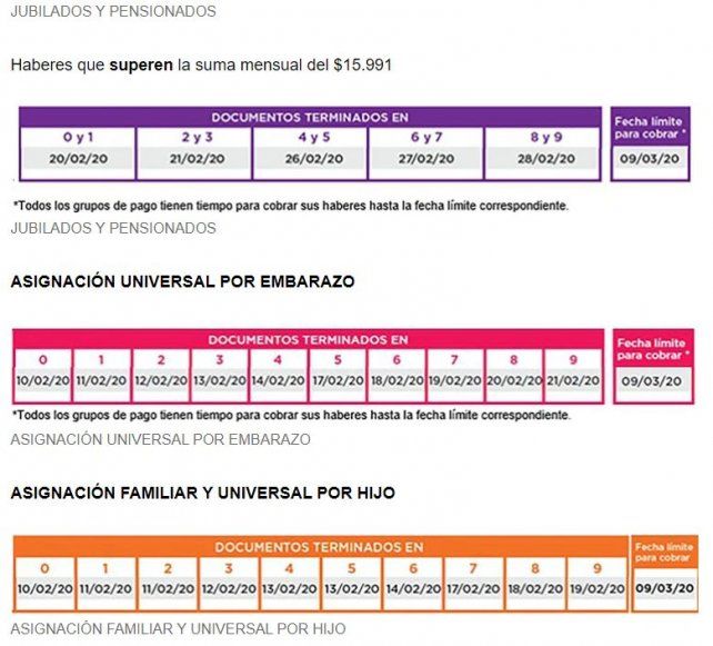 El calendario incluye también a las Pensiones No Contributivas, AUH y por Embarazo, Prestación por Desempleo y Asignaciones Familiares y de Pago Único.
