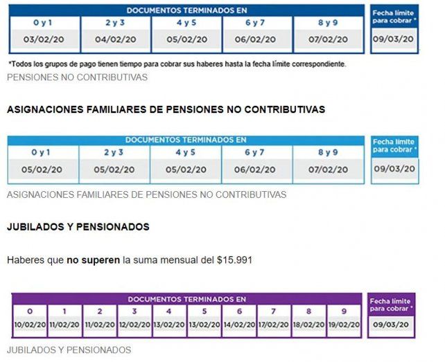 La Anses publicó el cronograma de cobro del mes de febrero, ordenado según la terminación del DNI, para que los beneficiarios de jubilaciones, pensiones, Pensiones No Contributivas, Asignación Universal por Hijo y por Embarazo, Prestación por Desempleo y Asignaciones Familiares y de Pago Único (matrimonio, nacimiento y adopción).