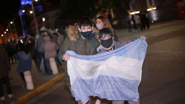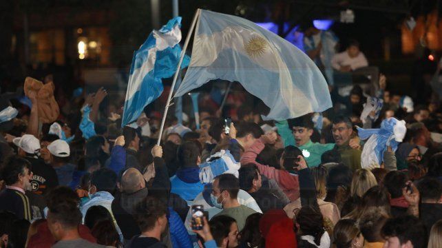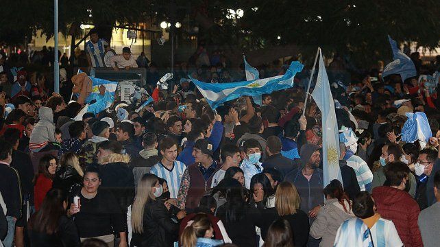 Los hinchas de Paraná salieron a festejar el triunfo de Argentina y el logro de la Copa América 2021. Se congregaron en plaza 1º de Mayo.