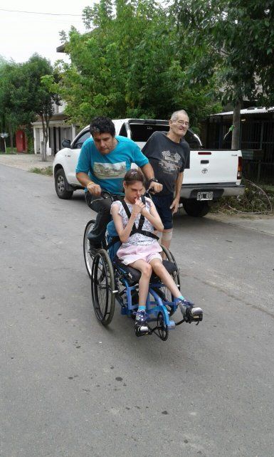 Jacqui tiene 27 años. Es su prima, y para ella construyó una bicicleta que le permite realizar movimientos en sus piernas. "Si no, se movía solo con el kinesiólogo. Mi tío tenía que empezar a hacer alguna actividad. Entonces ahora él la lleva en bicicleta con una silla de ruedas y una aplicación que le permite a mi prima un pedaleo pasivo: sus pies se mueven al ritmo en que se marche", contó Varisco. Muchos vieron el trabajo terminado, y nuevos requerimientos comenzaron a llegar.