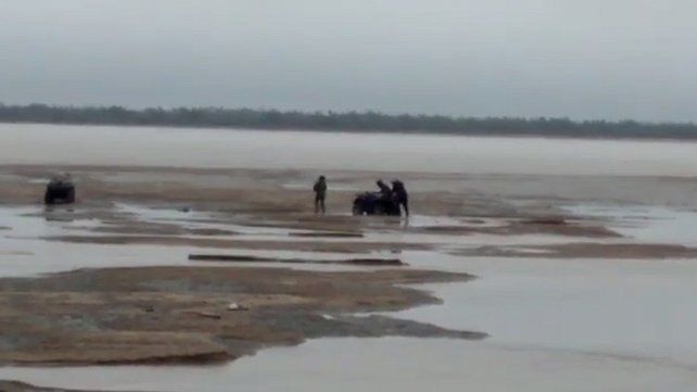 Ahora se suma una nueva imagen, ésta vez en Villa Urquiza, a 45 kilómetros de Paraná, el lunes feriado por la mañana, donde se puede ver a un grupo de personas en cuatriciclos realizaban maniobras y recorridos en un gran banco de arena. En algún momento uno de ellos quedó atascado en un sobre relieve y sus compañeros lo ayudaron a salir con cuerdas, tal como puede verse en las imágenes. Llevaban chalecos salvavidas. Aún así, está claro que es riesgoso.