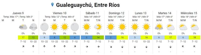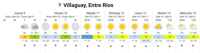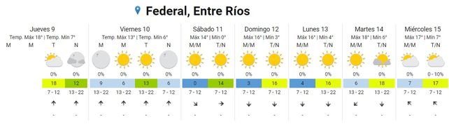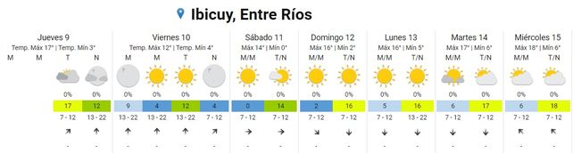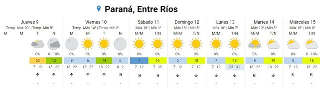 De acuerdo a las previsiones del Servicio Meteorológico Nacional (SMN) se esperan bajas temperaturas y muy bajas sensaciones térmicas desde la tarde de este viernes por el ingreso de una masa de aire frío de origen polar. En ese sentido se esperan, a partir del viernes 10 y hasta el domingo 12, mínimas de entre -2º/0ºC y máximas entre 14º/16ºC.