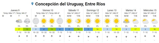 Cabe aclarar que la sensación térmica por efecto del viento será menor, principalmente en zonas rurales y costeras. Durante este evento se prevén la formación de heladas y la ocurrencia de precipitaciones aisladas con bajo acumulado.