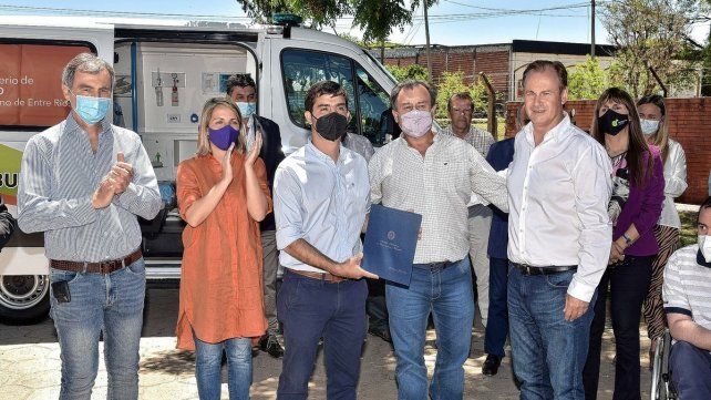 En el hospital zonal 9 de Julio de La Paz, junto a la vicegobernadora Laura Stratta y la ministra de Salud, Sonia Velázquez, Gustavo Bordet entregó una nueva ambulancia para ese nosocomio al intendente Bruno Sarubi.