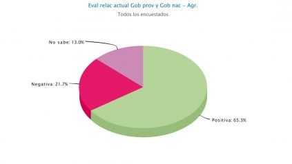 El 65,3% considera positiva la relación de Bordet con el gobierno nacional, mientras que el 21% la evalúa como negativa, y el 13% no opina al respecto.