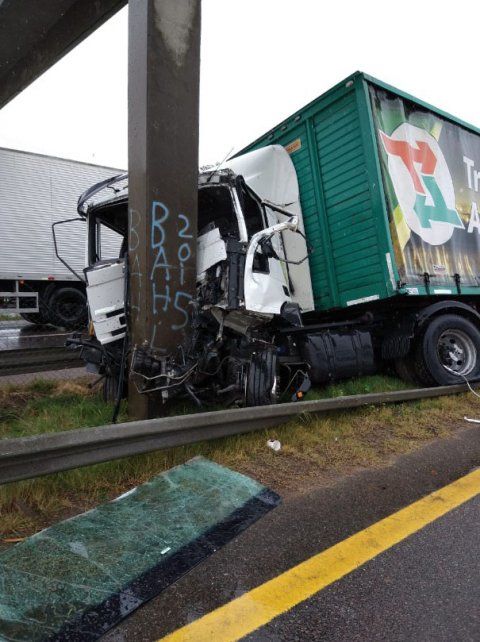 Según los primeros datos, por una mala maniobra de un automovilista, el camionero que guiaba un Fiat Iveco (Dominio IWA 023) perdió el control del rodado y se incrustó en una columna del aliviador Zárate Brazo Largo.