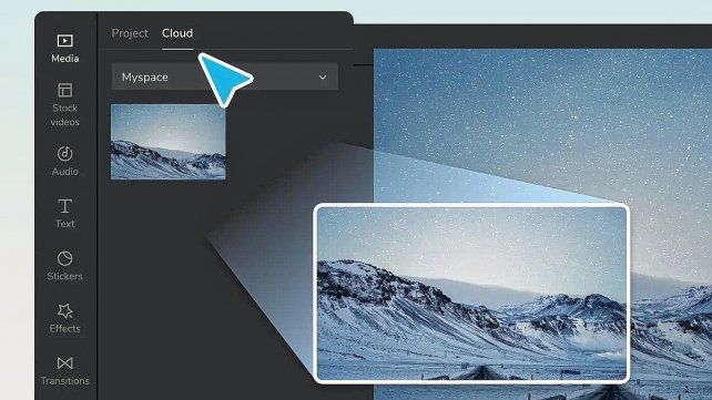 Cargue archivos multimedia desde su disco local, Google Drive, Dropbox o Myspace. Utiliza las herramientas de edición como recortar, ajustar, cargar efectos, sonido, transiciones, etc. para producir contenido audiovisual atractivo para tu audiencia.