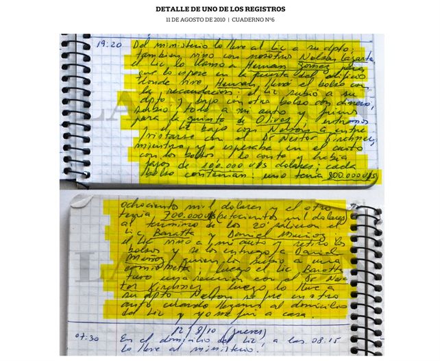Posteriormente, en 2018, un periodista del diario La Nación se presentó ante el fiscal Stornelli y puso en su conocimiento que una fuente le había revelado que un chofer del Ministerio de Planificación Federal -que luego sería identificado como Centeno- había anotado los movimientos de Baratta y otros funcionarios que trasladaban bolsos con dinero, desde las sedes de distintas empresas constructoras, de transporte y proveedoras de servicios, a los despachos y/o domicilios de autoridades del Poder Ejecutivo Nacional.