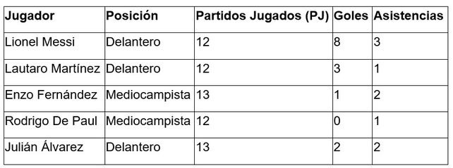 - El Ataque: Lionel Messi se mantiene como el máximo goleador del equipo en las Eliminatorias con 8 tantos. La contribución ofensiva se distribuye también entre Lautaro Martínez (3), Nicolás Otamendi (3) y Julián Álvarez (2), quienes garantizan alternativas en el centro del ataque.