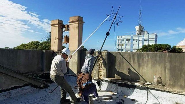 Las tareas de puesta en valor han incluido la restauración de la escalera y refuerzo de su estructura con la colocación de tensores, la colocación sobre la terraza de una membrana geotextil impermeabilizante, el pintado del interior –respetando el color original- y la instalación de una placa de acrílico en el portón de acceso que impedirá el ingreso de palomas. El trabajo que está concluyéndose, también incorpora el arreglo del antiguo pararrayos alojado en el lugar.