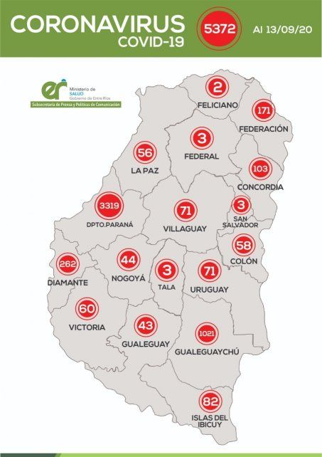 El área de Vigilancia Epidemiológica confirmó que este domingo en Entre Ríos se registraron 160 nuevos casos de coronavirus, que se distribuyen departamentalmente de la siguiente manera: