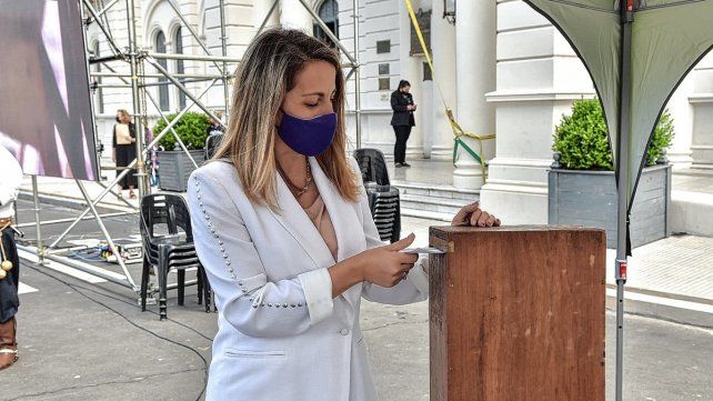 La vicegobernadora Laura Stratta emitió su voto.