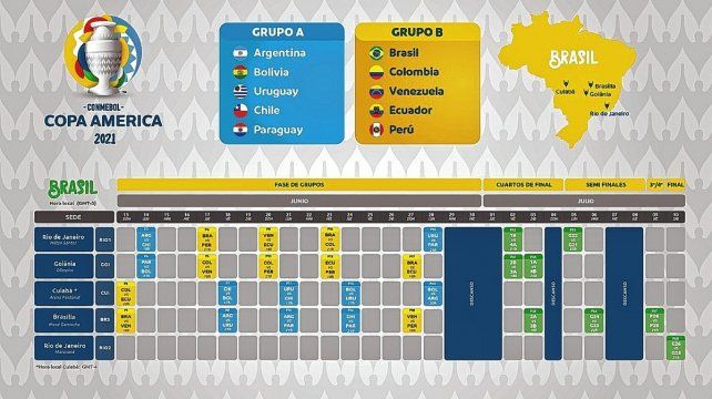 Este miércoles por la noche, la Conmebol hizo oficial el fixture de la Copa América 2021, que se disputará en Brasil en menos de dos semanas. Rápidamente, y a pocas horas de que se confirmara el cambio de anfitrión del certamen continental, la Confederación Sudamericana dio a conocer los días y horarios en los que se jugará el torneo.