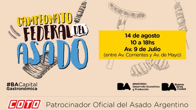 El evento organizado por el Ministerio de Desarrollo Económico y Producción, a través de BA Capital Gastronómica, se llevará a cabo el domingo 14 de agosto, de 10 a 18 h, en la Av. 9 de Julio, entre Av. Corrientes y Av. de Mayo. Contará con un jurado de reconocidos especialistas de la gastronomía como Christian Petersen, Felicitas Pizarro, Pietro Sorba, Luciano Luchetti (Locos x el Asado), entre otros.