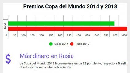 Como ejemplo, el seleccionado dirigido por Alejandro Sabella ganó un premio de 25 millones de dólares por haber alcanzado la final del Mundial Brasil 2014, pero esta vez las pérdidas serán mayores por el incremento del 20 por ciento de la bolsa de dinero dispuesta por FIFA.