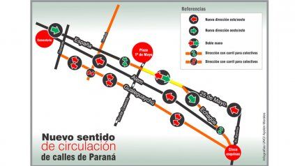 En tanto, 25 de Mayo entre Yrigoyen y avenida Ramírez mantendrá su dirección actual. Y finalmente, Alem-Perú tendrá circulación este a oeste, desde Cura Álvarez hasta el cementerio municipal. Mientras que Alem, entre Alsina y avenida Ramírez, tendrá sentido de circulación oeste-este, para acompañar el flujo de egreso desde avenida Echagüe.