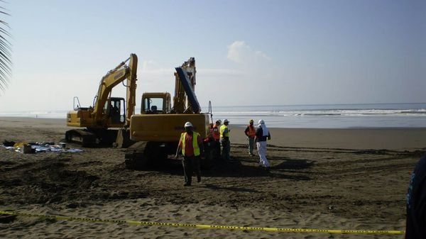 Aterrizaje cable de fibra optica submarino en Las Toninas, Argentina. Imágenes barco "Ocean Hercules" en Las Toninas depositando el cable que viene por mar. Vistas generales de los trabajos realizados por los obreros y buzos en la playa.