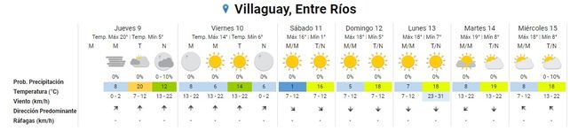 Este viernes, en tanto, se espera que el cielo esté despejado toda la jornada, con temperaturas más bajas: 6° de mínima y 14° de máxima.