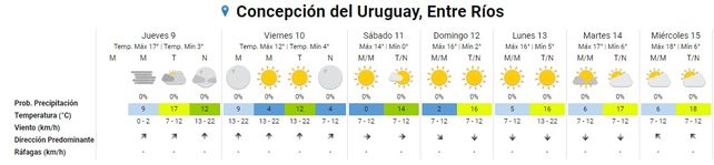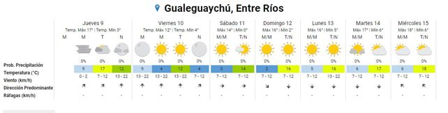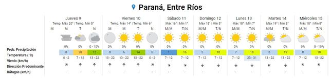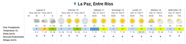 El fin de semana el frío se hará sentir. Para la zona centro y norte de Entre Ríos el Servicio Meteorológico anuncia mínima de 1° para el sábado, aunque en la zona sur será de 0°, y las rondarán los 15° o 16°. El cielo despejado y soleado, según el pronóstico, permitirá atenuar el frío durante el día.
