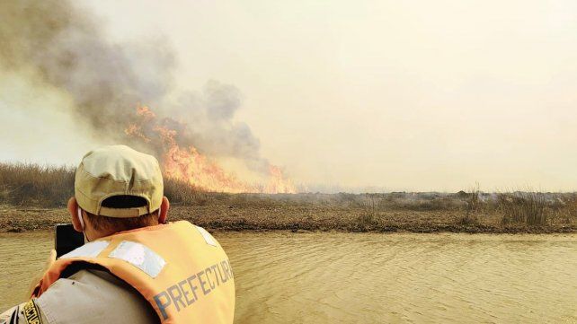 Cabe destacar que personal de distintas dependencias de la Prefectura, ubicadas sobre el río Paraná, continúan trabajando en la zona de incendios, donde prestan apoyo logístico y colaboran con los equipos de brigadistas que combaten el fuego.