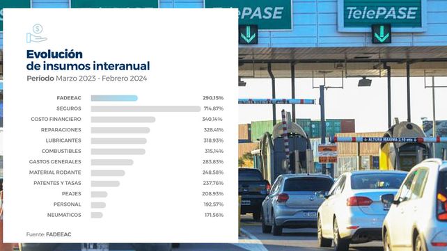 De acuerdo con el relevamiento, en febrero seis rubros mostraron aumentos (Combustible, Neumáticos, Reparaciones, Personal, Seguros y Gastos Generales), tres no sufrieron cambios respecto de enero (Lubricantes, Patentes y tasas, y Peaje), y dos registraron bajas (Material rodante debido a la fuerte disminución mensual de los dólares alternativos-, y Costo financiero -vinculado con el descenso de las tasas de interés).