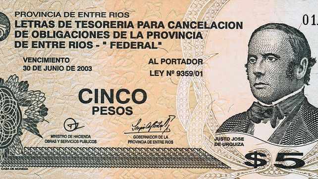 Los Bonos Federales, que rechazaba la gente, fueron aprobados por una escueta mayoría en la Legislatura local y promulgados por el gobernador a fines de septiembre de 2001, prácticamente en vísperas del estallido de diciembre. El propio Schunk, que integraba aquella Multisectorial, recuerda que se emitieron equivalentes a 328 millones de pesos de aquel momento, unos 348 millones de dólares. Y que la experiencia naufragó a poco de estrenarse.