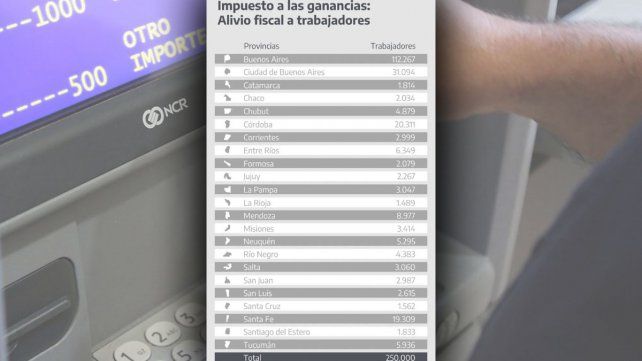 La reducción total de trabajadores que pagan impuesto a las ganancias beneficiará aproximadamente a unos 250.000 empleados en relación de dependencia, según informó el Ministerio de Economía, que desagregó el alcance por provincia. En Entre Ríos se liberan del pago 6.349 trabajadores.