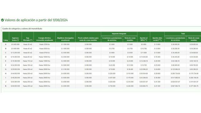 Las nuevas categorías se pueden ver en la página de la AFIP y son las siguientes: