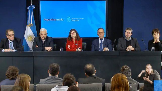 La funcionaria se mostró acompañada de los ministros de Desarrollo Productivo, Daniel Scioli; Agricultura, Julián Domínguez; y Turismo, Matías Lammens; y el presidente del Banco Central, Miguel Pesce.