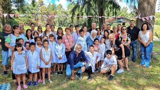 Actos. Gran alegría significó la presencia de Doldán que también hizó la bandera con los estudiantes.