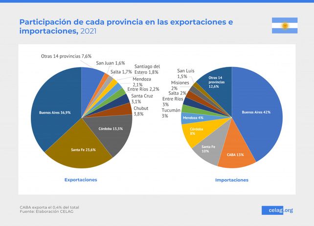 CABA es la principal consumidora neta de dólares y genera el 60 % del déficit de las jurisdicciones deficitarias -más que el resto de todas las provincias deficitarias juntas-, como consecuencia de que exporta menos del 1 % del total exportado por el país, pero importa el 13 %.
