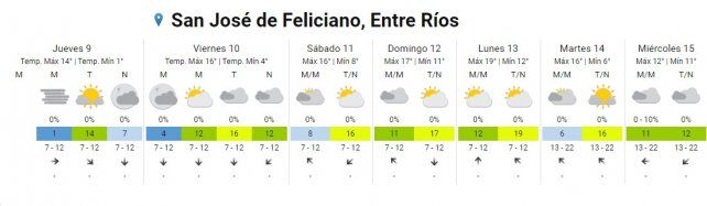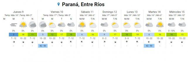 La misma condición tendrá el domingo con cielos nublados y parcialmente nublado y temperaturas en leve ascenso en el rango de los 9º C y 17º C.