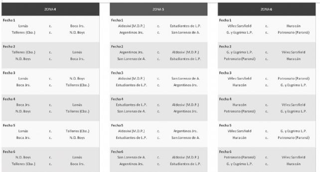 Zona 6: Vélez, Huracán, Patronato y Gimnasia de La Plata