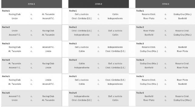 Zona 1: Racing, Arsenal, Atlético Tucumán y Unión de Santa Fe