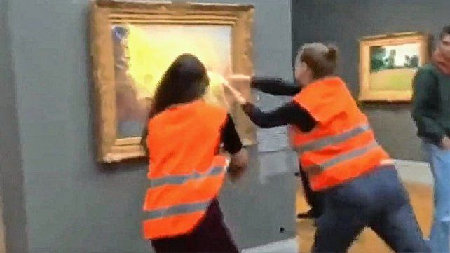 Este domingo, en el sur de Berlín, Alemania, activistas de la misma agrupación lanzaron puré de papas a un Monet valuado en 110 millones de dólares; días antes fue puré de tomate a los famosos girasoles de Van Gogh.