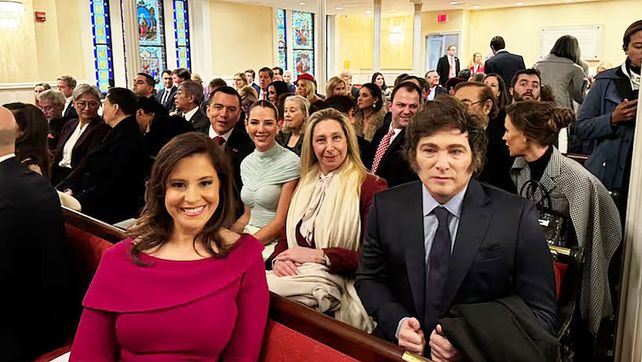 Trump, de la mano de su mujer Melania y seguido por su hijo menor, Barron, salió de la iglesia a las 9.16 hora local. Saludó con la cabeza a varios asistentes al salir y le dio una breve palmadita en el brazo a Milei.