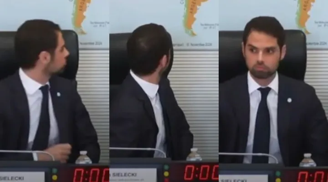 Sielecki explicó que, como representante del Estado argentino, no podía hablar ante ese mapa. "Como representante del Estado argentino, no puedo hablar libremente ante este mapa. Supondría legitimar una situación que constituye un atentado a la soberanía de mi país, a la dignidad de la nación argentina y una violación flagrante del derecho internacional", afirmó.