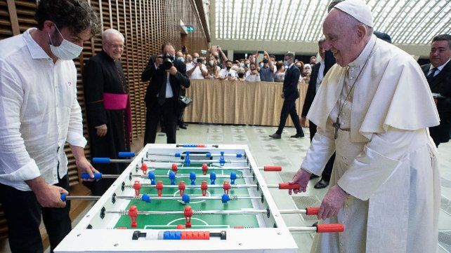 El Papa Francisco mostró este miércoles su costado "futbolero" y jugó un rato al metegol durante la Audiencia General que encabezó en el Vaticano. Con buen semblante a más de un mes de la operación de colon a la que se sometió el 4 de julio, el Papa se paró con el equipo rojo para un pequeño intercambio en un metegol preparado a un costado del Aula Pablo VI, donde tuvo la tradicional reunión con sus fieles.