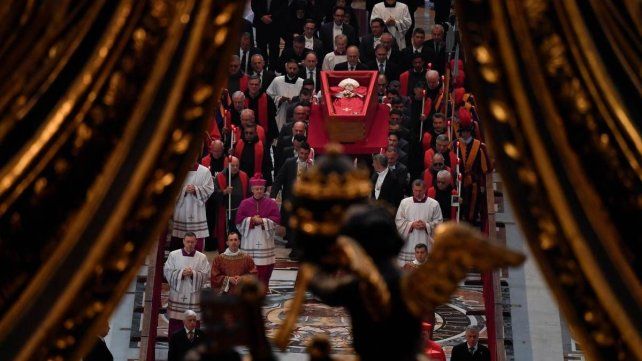 El primer Papa latinoamericano yace en un sencillo ataúd abierto, ante el imponente baldaquino barroco de la iglesia más grande del mundo