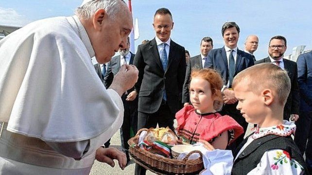 El avión que llevó a Francisco a Hungría aterrizó en el aeropuerto de Budapest a las 9.53 hora local. El Santo Padre bajó de la nave por la parte trasera, pero llegó a los pies de la escalera anterior del avión caminando, algo que provocó los aplausos y la alegría de cuantos lo esperaban. En la escalera anterior, además del vice primer ministro y otras autoridades civiles y religiosas, un grupo numeroso de fieles. Como gesto de bienvenida dos niños en trajes típicos le entregaron un pan realizado en la sede de la Conferencia Episcopal húngara, "símbolo de vida, bendición y buena suerte", que el Santo Padre inmediatamente probó. En Europa Central es costumbre dar la bienvenida al Sucesor de Pedro con este regalo: también ocurrió en 2021 en Bratislava durante la visita del Papa Francisco a Eslovaquia.