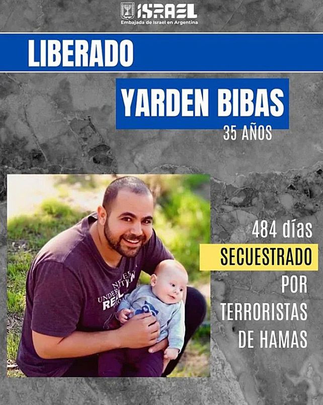 Hamás liberó a tres rehenes este sábado, uno de 65, 54 y 35 años de edad. Uno es Yarden Bibas, el padre de dos nenes argentinos secuestrados en Gaza
