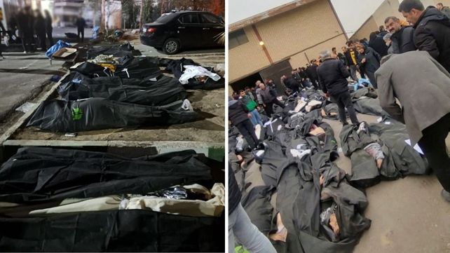 Los cuerpos de las víctimas apilados en el Kahrizak Forensic Medical Centre de Teherán, Irán