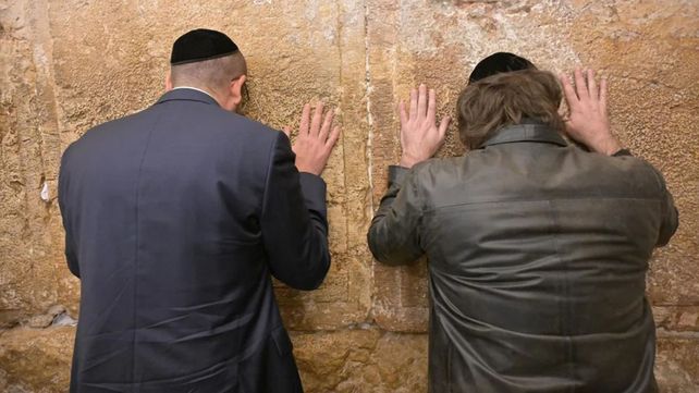 Javier Milei volvió a llorar en el Muro de los Lamentos. Hoy mantendrá audiencias con Isaac Herzog y con el primer ministro de Israel, Benjamín Netanyahu